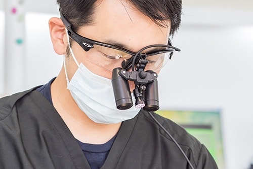 必要に応じて肉眼の10倍以上の倍率を持った拡大鏡を用いて治療を行います。より細かい部分まで治療ができるので治療の予後が違ってきます。