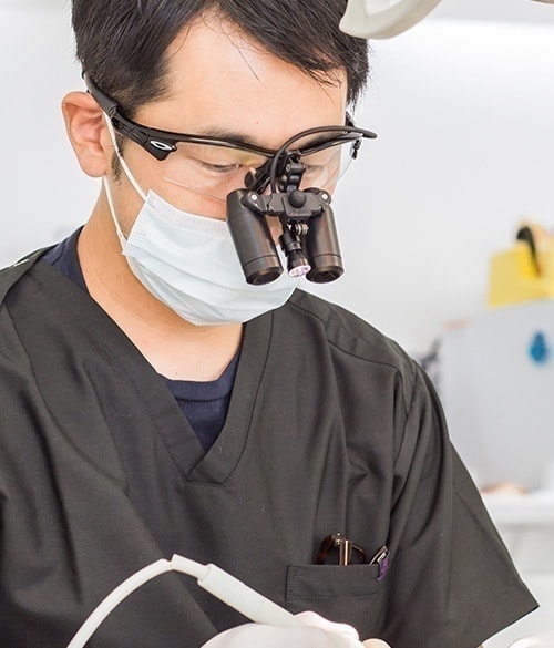 必要に応じて肉眼の10倍以上の倍率を持った拡大鏡を用いて治療を行います。より細かい部分まで治療ができるので治療の予後が違ってきます。