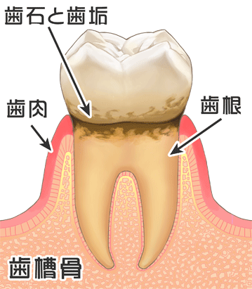 歯周病の原因は歯の周りに付く汚れであるということ、汚れの中にいる細菌は歯石の中で増えるということが分かっています。ですので定期的に歯石を取るということが歯周病の予防・進行抑制になり、いかに大事かということになります。
